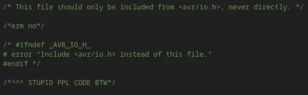 Part of what I really wanted to do for this week was to try and use VS code to write C and upload that as a hex to my ATTiny412. I had so many issues with this and I tried a lot of fixes which didnt do anything but were really good for learning the low level peices and and documentation. So firstly I had an issue with PORTA being undefined and so I went into a deep dive into the IO.h file and really trying to figure out what is broken in my files.