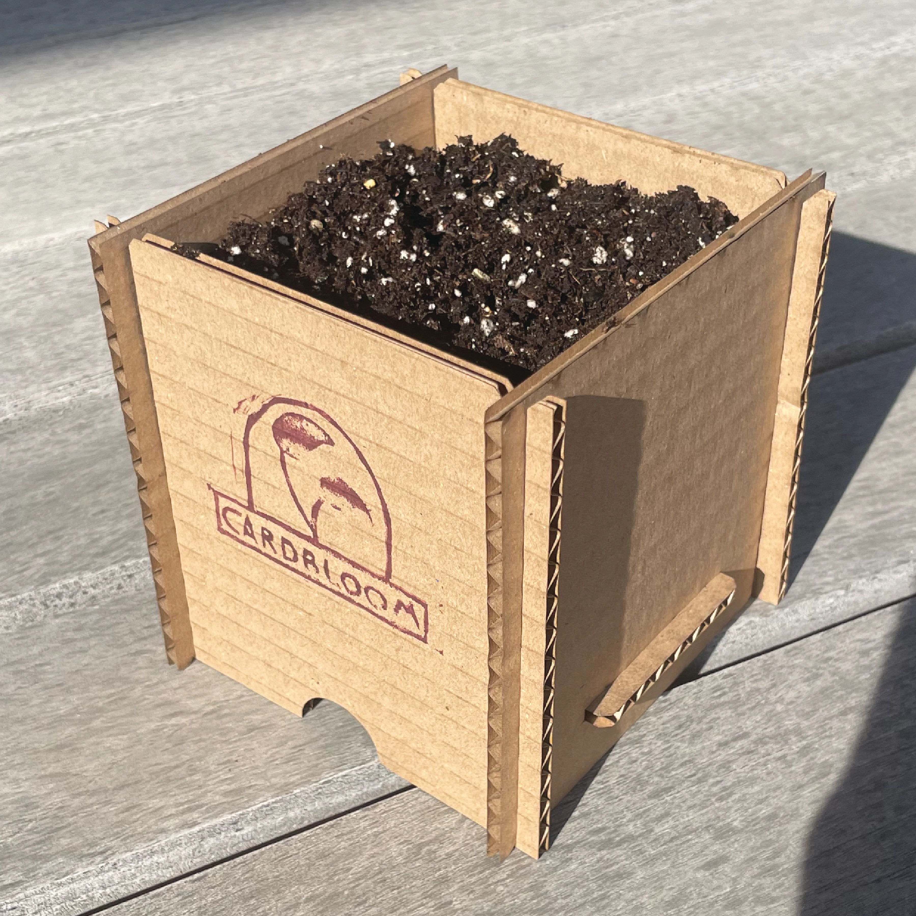 CARDBLOOM is a sustainable alternative to the disposable plastic pots found in nurseries everywhere. CARDBLOOM can be cut from waste cardboard and easily assembled. The pot features proper drainage and the ability to be directly planted. With adequate water, the pot will decompose in the soil in only 1 month. CARDBLOOM makes the planting process easier, and prevents more plastic from entering our landfills.