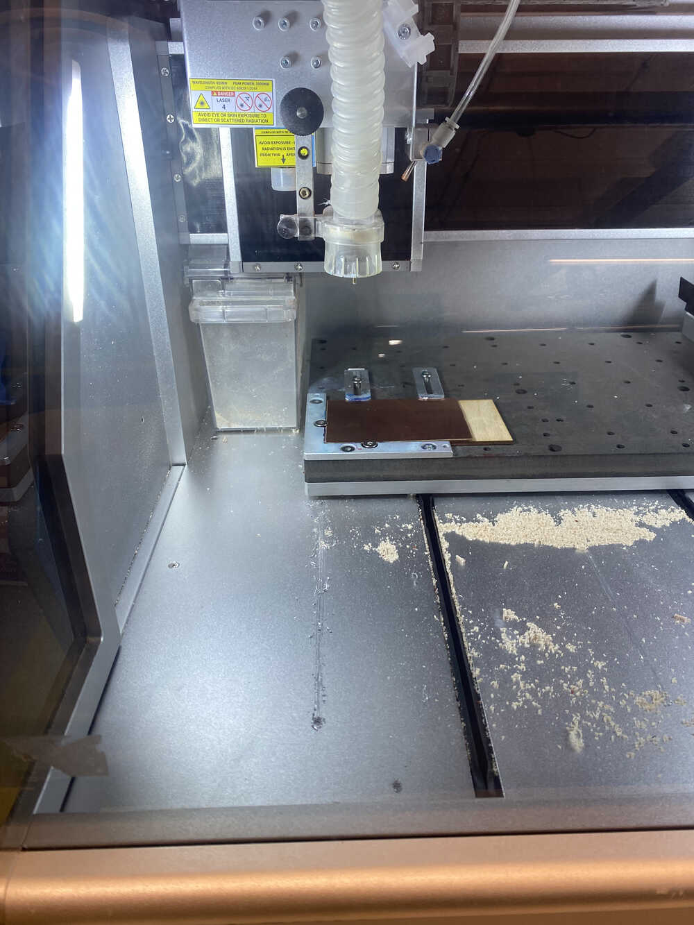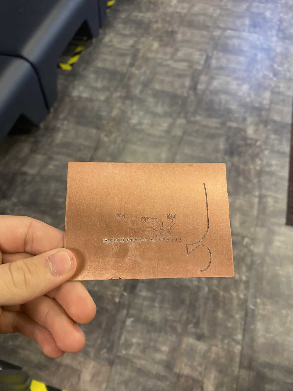 - This caused the corn bit to pull up the PCB board, causing the messed up line on the bottom right.