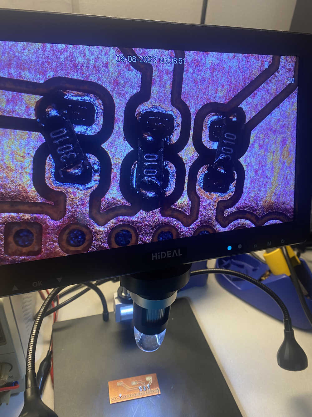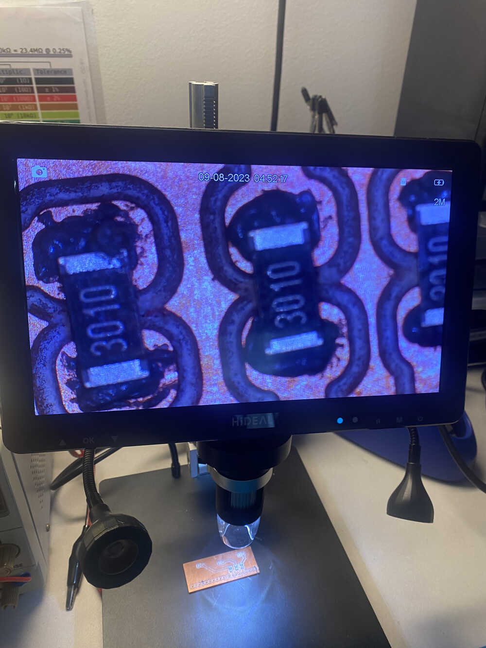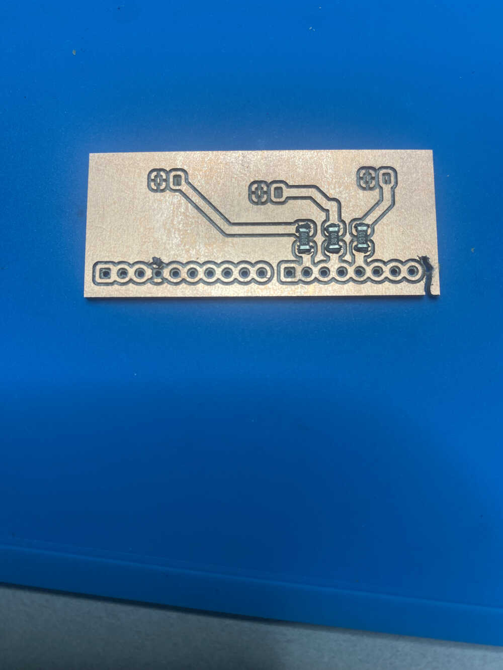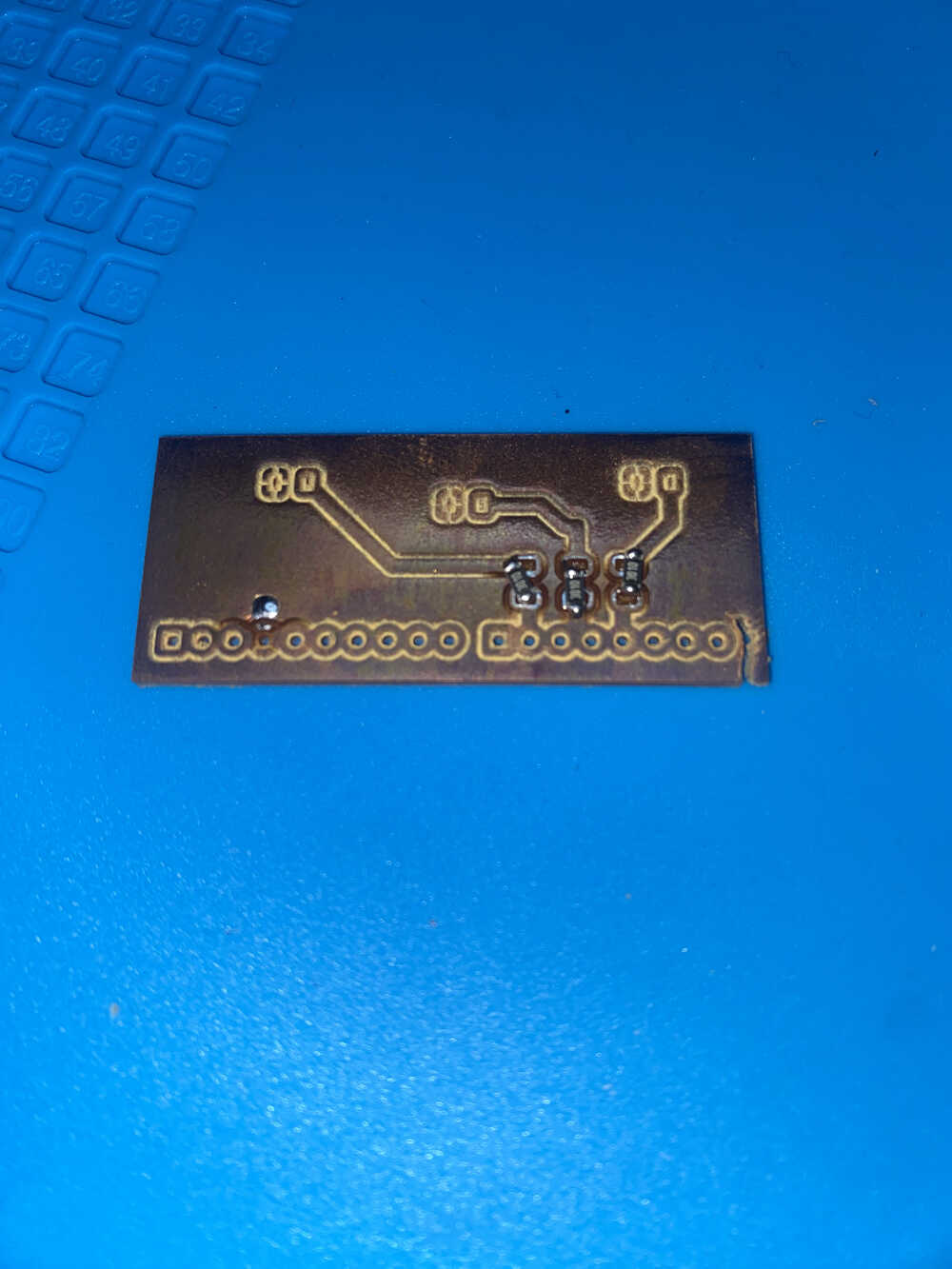 I continued to put on resistors with the paste despite the fact that the holes weren't totally sepperated.